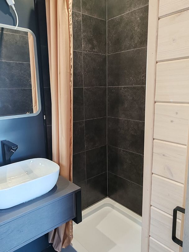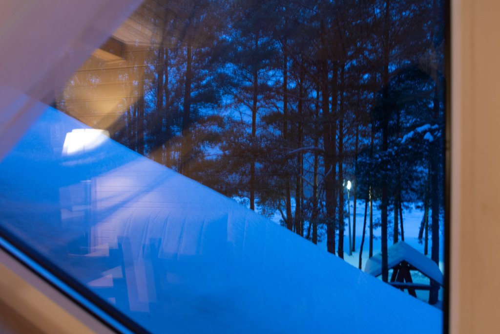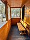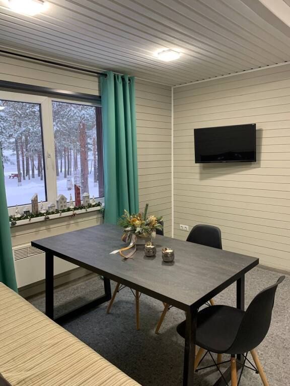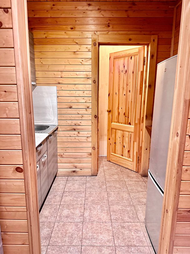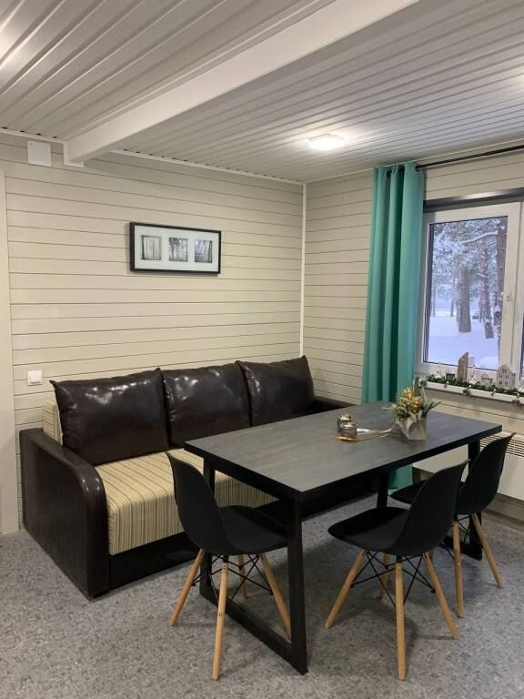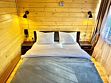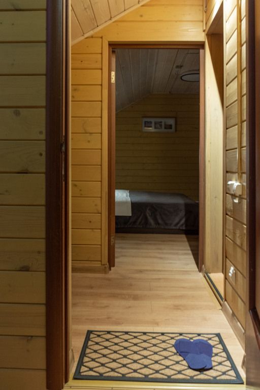 Двухместная беседка с панорамным окном и видом на северное сияние. Кухонная и спальная зоны, санузел с душевой. 2 спальных места. Зона для барбекю с мангалом, терраса со столом и скамьями.