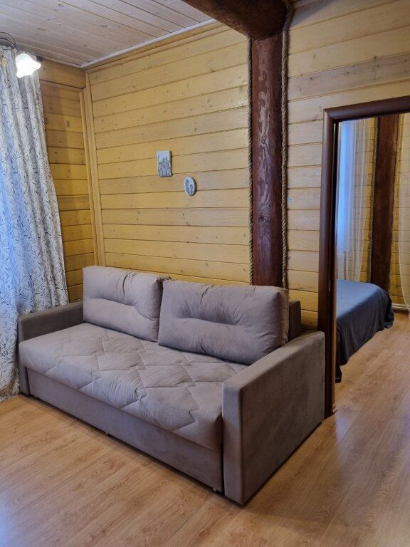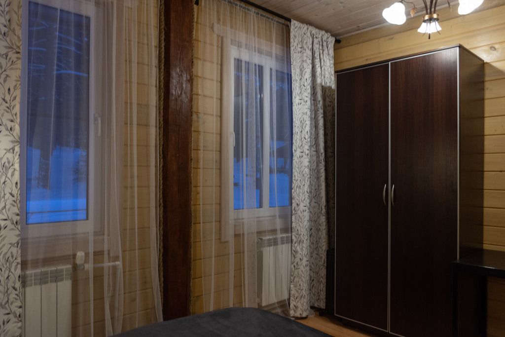 Рубленый коттедж состоит из четырех комнат, 2 санузла и душа, кухня. Здесь есть все необходимые условия для комфортного отдыха.