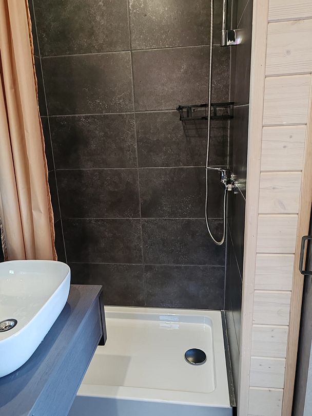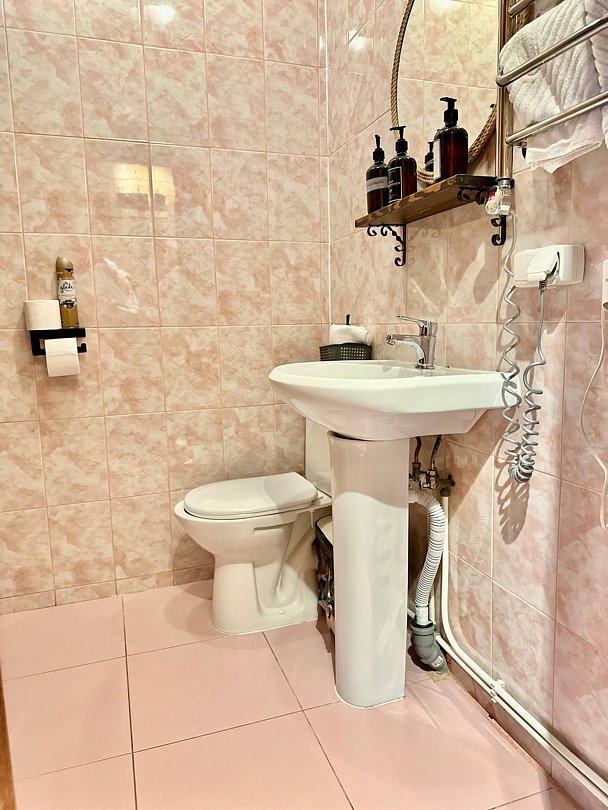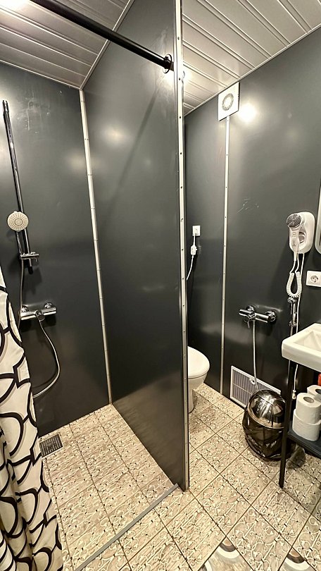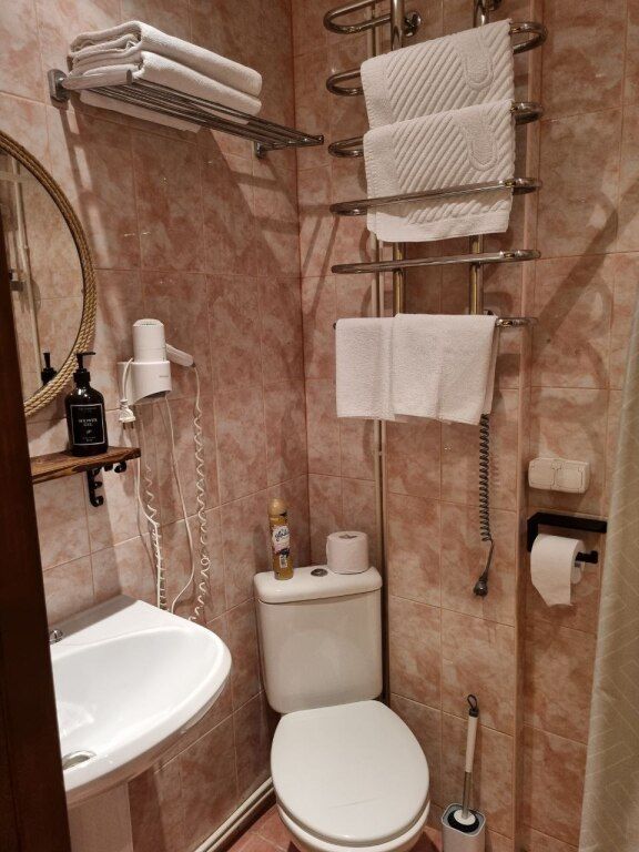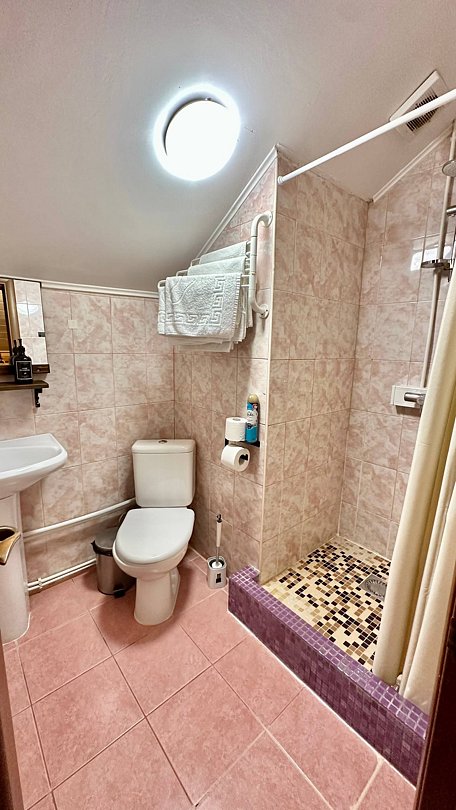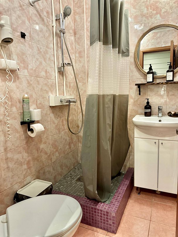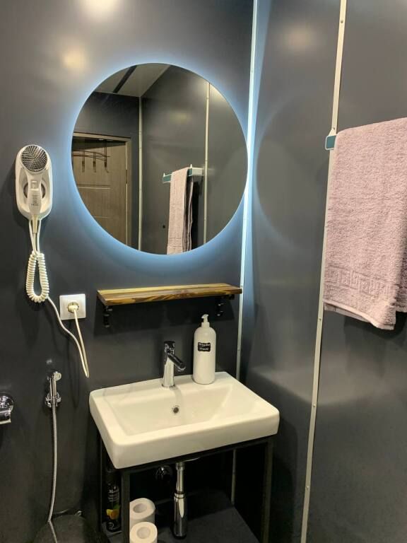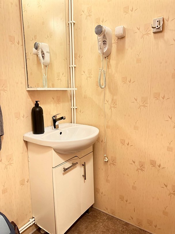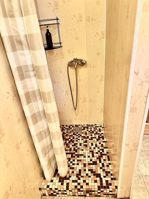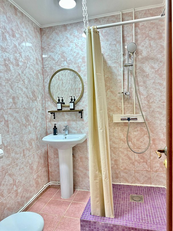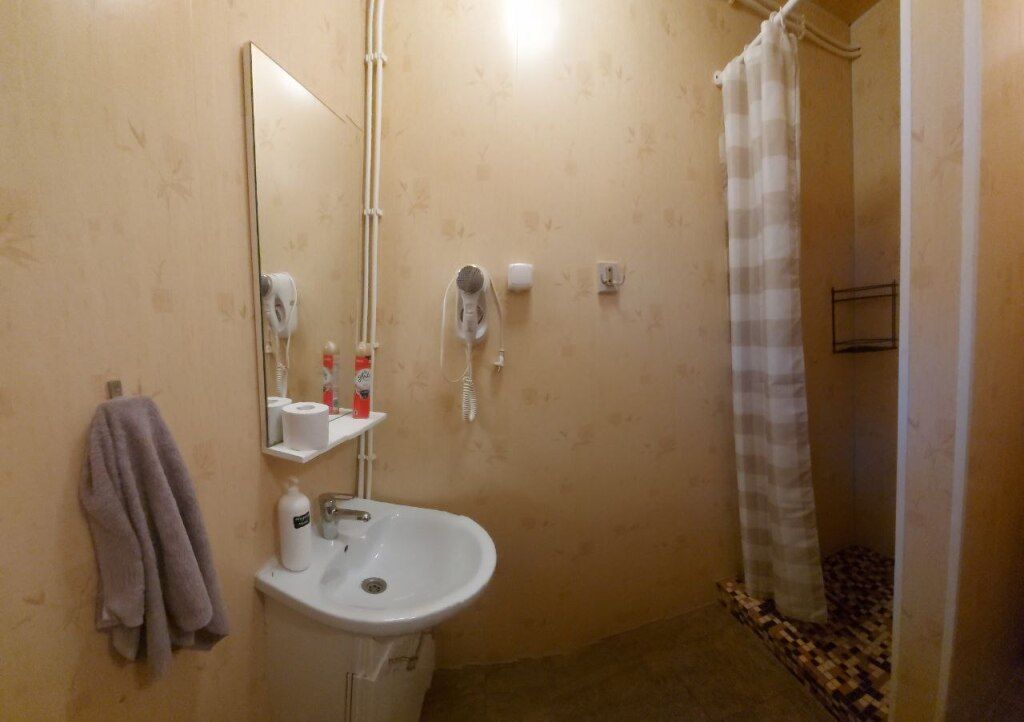 Собственный санузел в номере, душ с холодной и горячей водой.