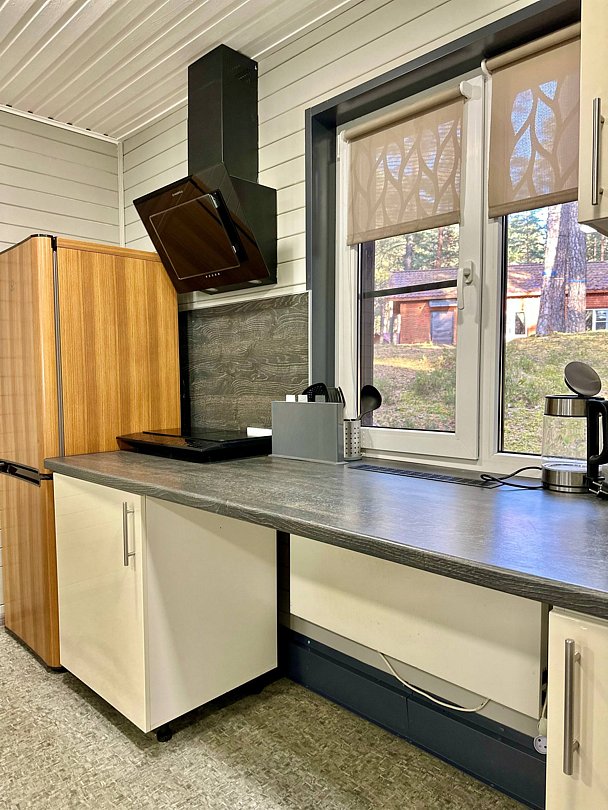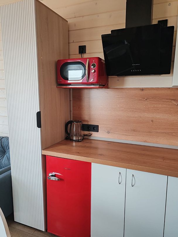 Оснащение коттеджа: Кухня оснащена холодильником, микроволновой печью, чайником, посудой на 8 персон.