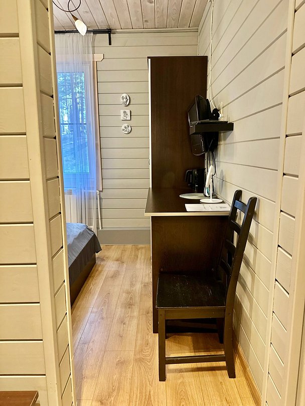 Компактный однокомнатный номер на 1-м этаже отеля с возможностью размещения одного или двух гостей.