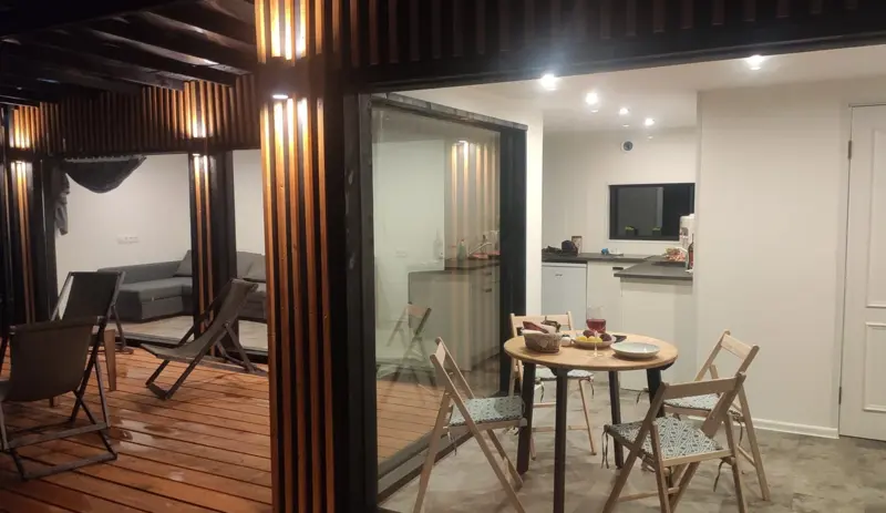 Семейный отдыхДостоинстваЗамечательно отдохнули, всё понравилось. Очень приятные владельцы, встретили, показали что где. Уютный дом в очень хорошем состоянии. Кухня/санузел/холодильник/посуда/полотенца/wifi - всё есть. Нет микроволновки, телевизора , но это и не особо необходимо. Зимними ночами отсутствие штор не сильно напрягает. Думаю, летом тем, кто хочет поспать, будет не очень комфортно. Есть небольшая чаша барбекю, на двоих хватило. Угли и розжиг нужны свои. Отличное место, рекомендую. За свои деньги - 5 баллов из пяти.