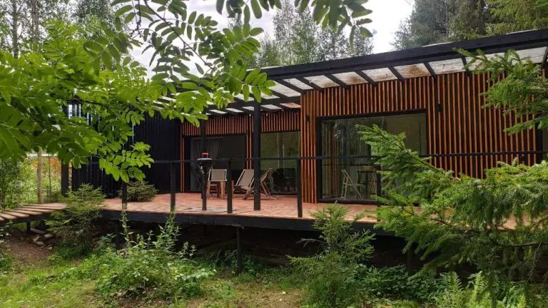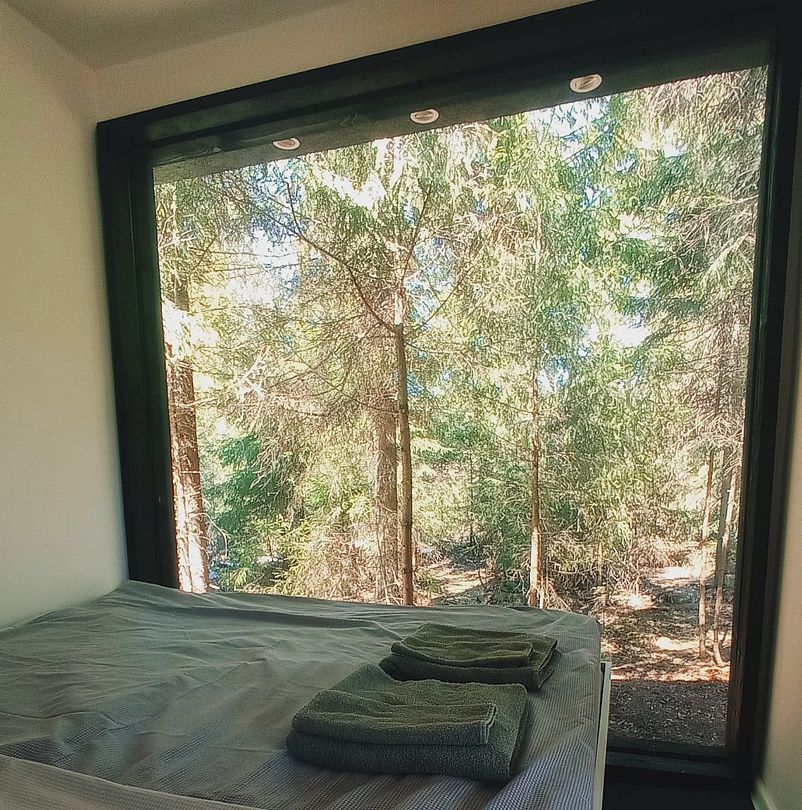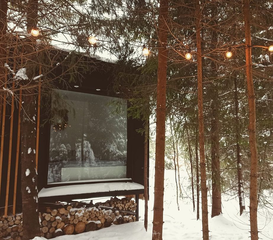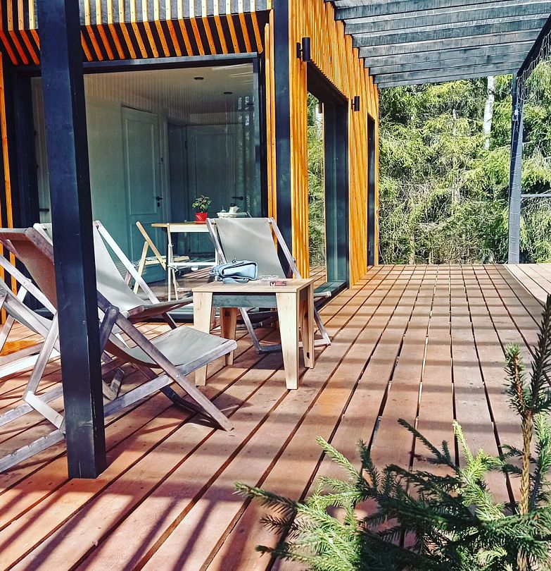 Дом выполнен в современном минималистичном стиле и оснащен всем необходимым для комфортного пребывания. Большие панорамные окна позволяют наслаждаться прекрасным видом на красоты леса в любое время года.