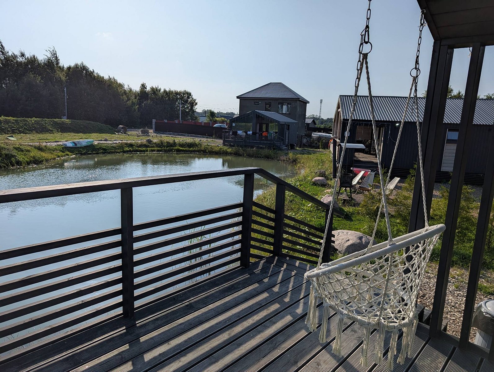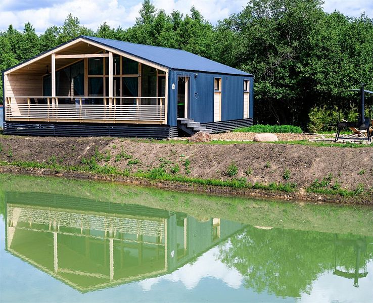 Терраса оборудована деревянным столом и скамейками со спинкой, гамаком, розетками и освещением по периметру и зонам. С террасы открывается панорамный вид на пруд. У каждого коттеджа расположена освещенная мангальная зона с уличной мебелью.