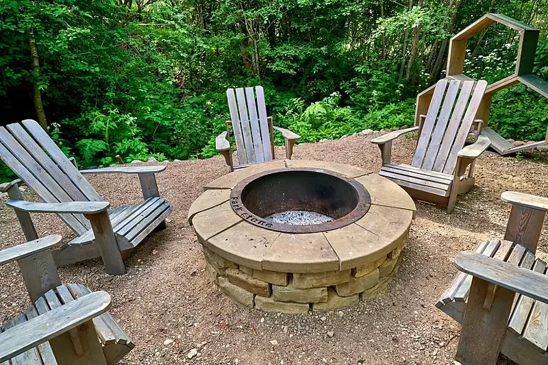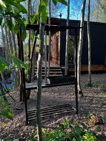 У каждого коттеджа расположена освещенная мангальная зона с уличной мебелью.