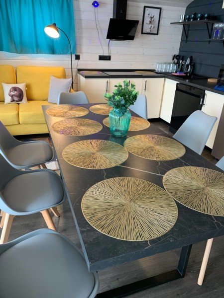 НедостаткиНе было чистой решетки для гриля, оставалась последняя. Пришлось отмывать в номере самостоятельно, при этом цена на нее как за чистую. Не работали в номере гирлянды ( Администратор об этом знала, и эту проблему никак не решили). Отключали электричество на час. Присутсвует камин, и в то же время рядом с ним нет костровой зоны (сидячих мест) Интерьер в доме хороший, но не хватает различия в освещении, например ,подсветки на кухне или торшера в гостиной.