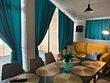 Просторная кухня-гостиная с панорамным видом на террасу и удобным кухонным модулем, включающем в себя: варочную панель, микроволновую печь, чайник, холодильник, раковину и посуду для приема и приготовления пищи на 4 гостей.