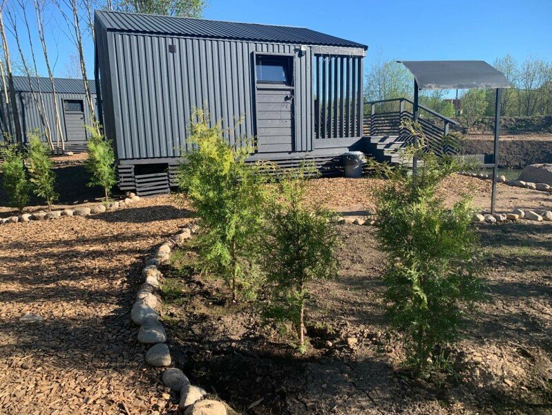 У каждого коттеджа расположена освещенная мангальная зона и уличной мебелью, пространство зонировано ландшафтом и растениями.