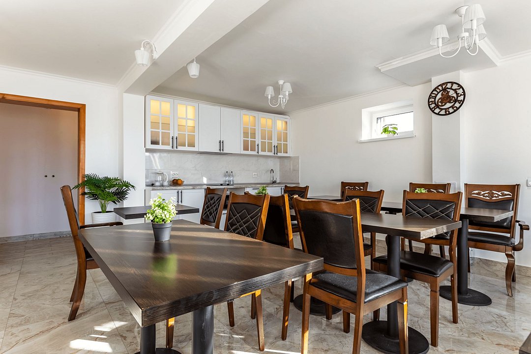 Дом сдается целиком. 12 комфортабельных номеров на 24 человека. Плюс 26 доп. мест. Всего до 50 человек.