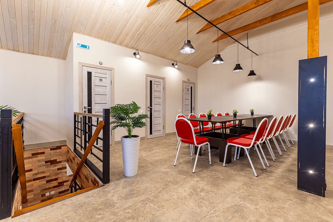 Номерной фонд состоит из двух комфортабельных коттеджей. Уютные номера пропитаны домашней атмосферой и уютом, а интерьер имеет легкие нотки элегантности. В каждом доме имеются многофункциональные залы, трансформируемые под разные мероприятия. Это отличное место для проведения бизнес-переговоров, тренингов и семинаров, которые могут сопровождаться фуршетом.