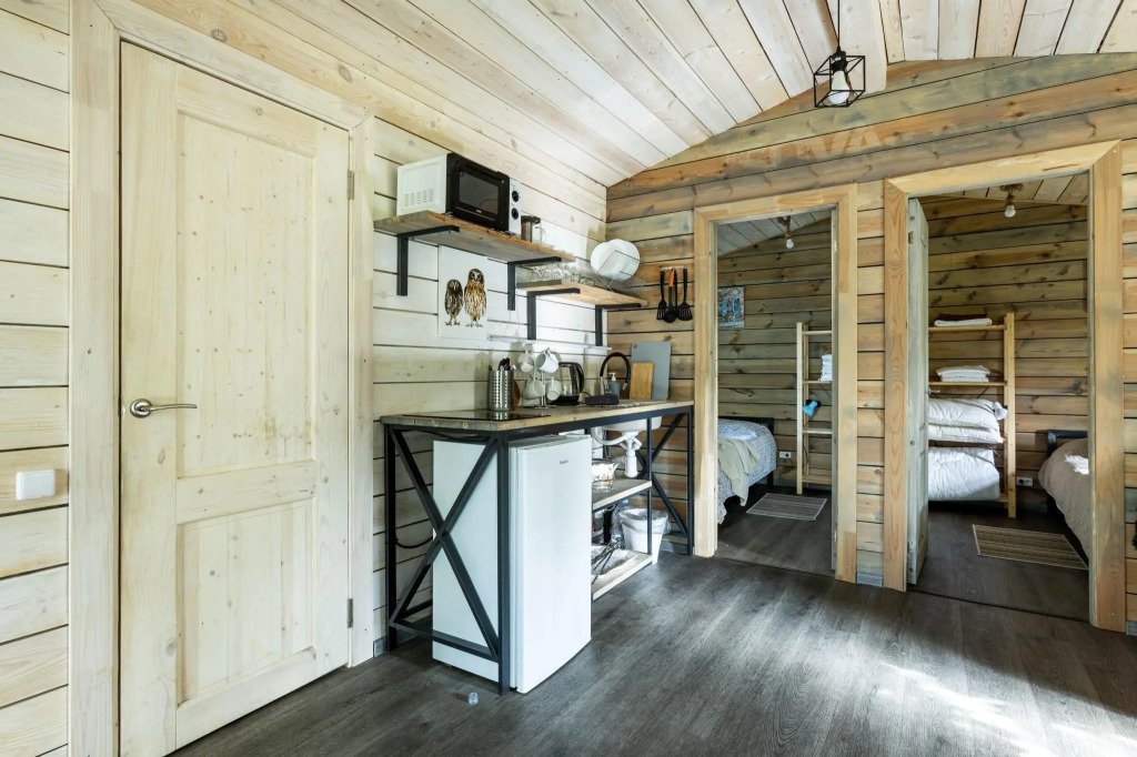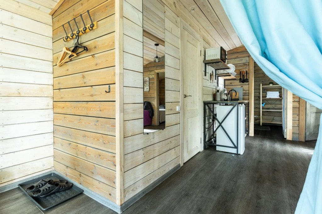 У каждого коттеджа свой мангал и терраса с уличной мебелью. Сушилки для обуви, хозяйственные принадлежности для уборки входят в стоимость.