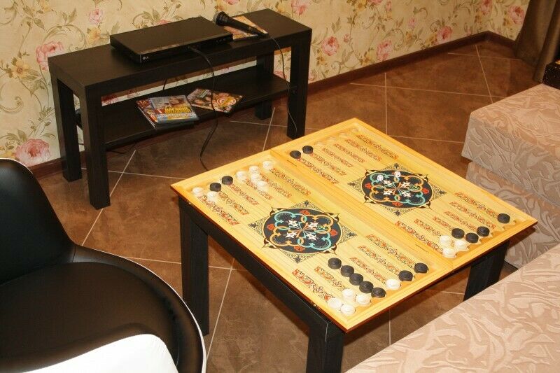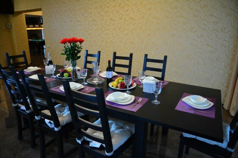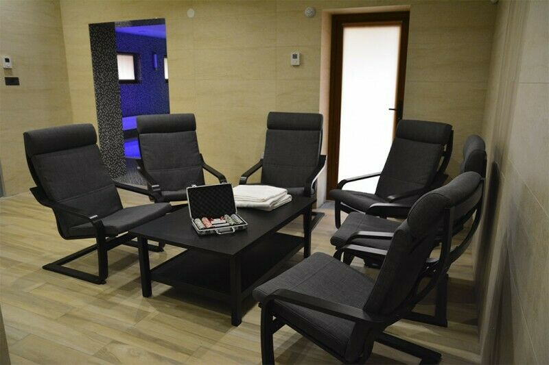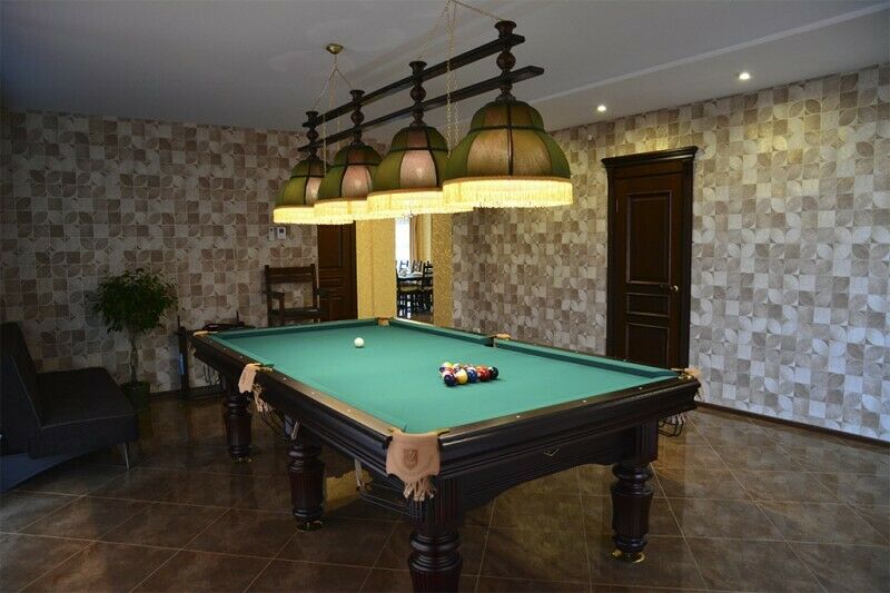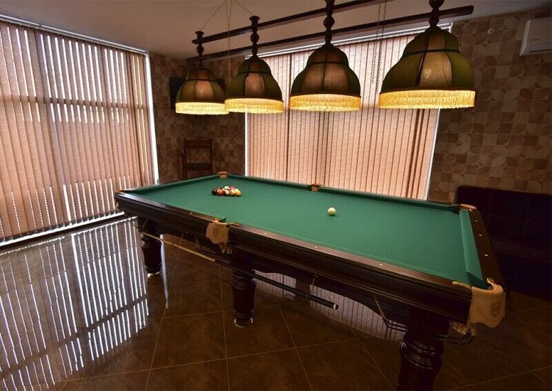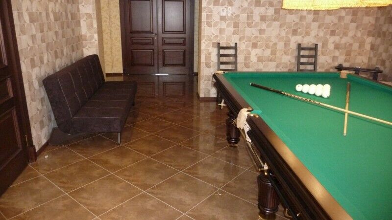 - Войдя в коттедж, вы попадаете в прихожую, где можно оставить верхнюю одежду. Далее вы перемещаетесь в просторную бильярдную. Справа находится дверь в комнату караоке, а если пойдёте прямо, то окажетесь у входа в зону SPA (включает душевую и туалет). Справа от него располагается обеденная зона: совмещённые кухня и столовая.