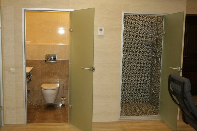 - Лестница на второй этаж находится слева от входа в спа-зону. На втором этаже вы найдёте три спальни и совмещённый санузел (просторная душевая кабина и туалет).