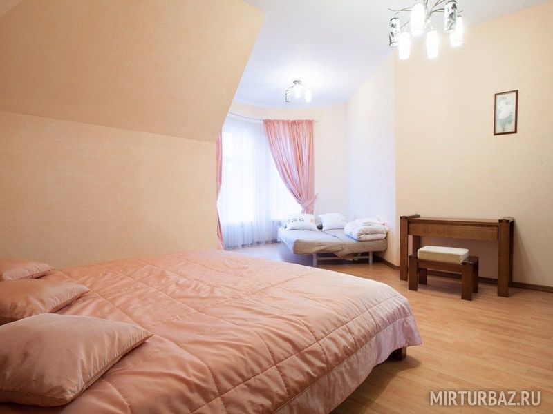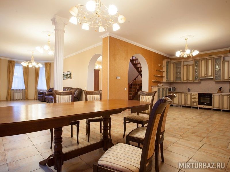 Просторный восьмикомнатный дом рассчитанный на шестнадцать гостей. На территории дома расположена беседка с мангалом. В самом доме — кухня, большая гостиная, ванная комната на втором этаже, туалетная комната на первом, и спальные комнаты с двуспальными кроватями. Есть возможность дополнительного размещения гостей.