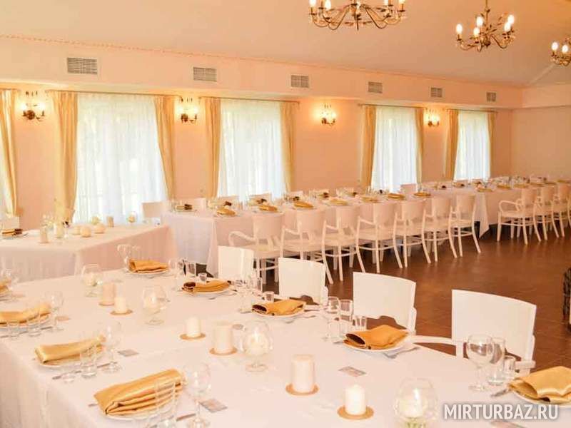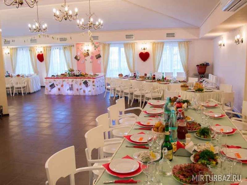 Большой банкетный зал представляет собой 2-этажное здание с балконом, панорамной площадкой и парковкой. Максимальная вместимость до 100 человек.