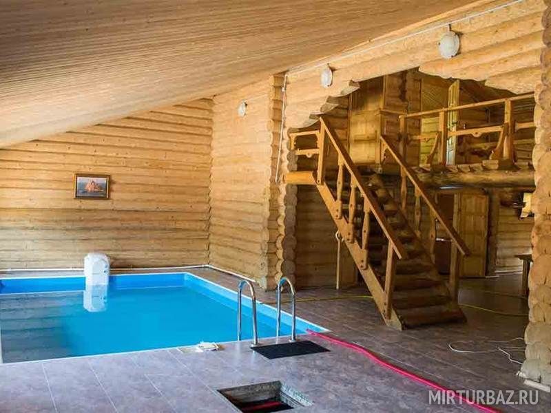 Общая площадь русской бани составляет 210 м². В бане 2 комнаты отдыха, большая парная, купель, бассейн с подогревом и противотоком, душевая, бильярд и обеденный зал до 20 человек.