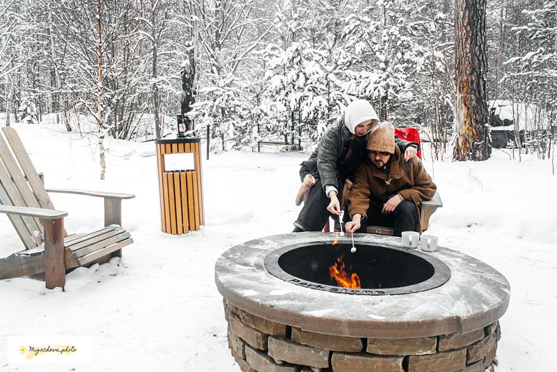 Горячие ванны на открытом воздухе. Печь дает возможность нагреть воду до нужной температуры, благодаря чему купание в чане комфортно даже в зимнее время года.