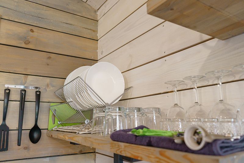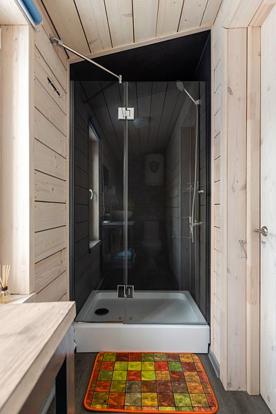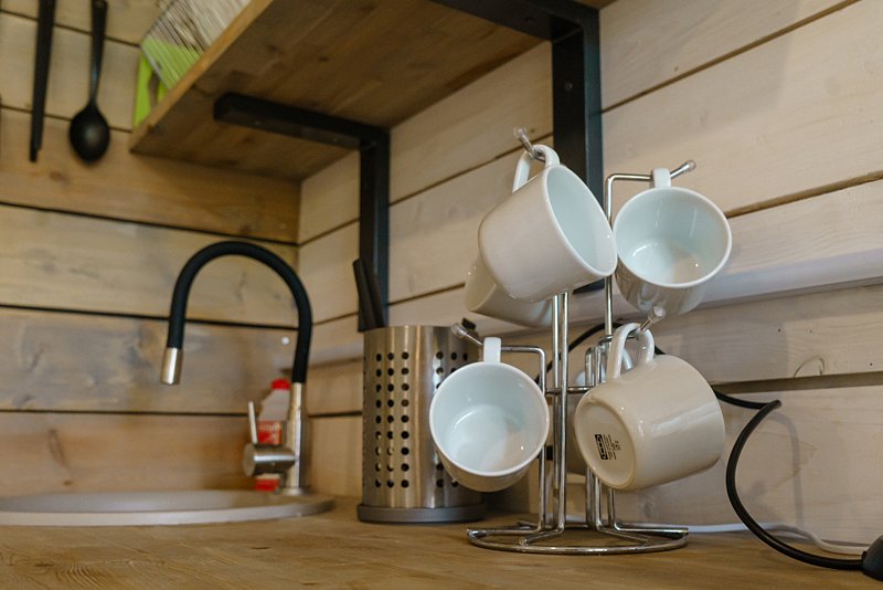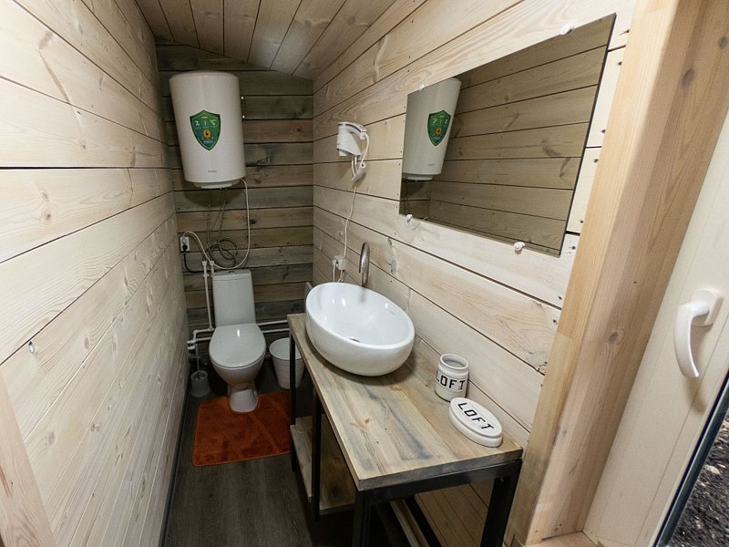 Кухонная зона оборудована всем необходимым для приготовления еды, В коттедже - конвекторы. Ванная комната с душем и раковиной. Просторная крытая терраса.