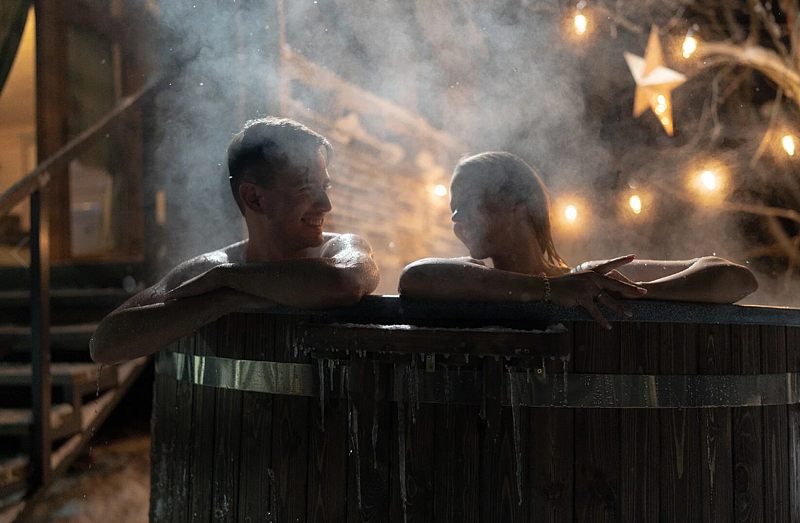 Ванны на открытом воздухе. Деревянная круглая бочка с удобными сидениями и подсветкой. Температура +35-45 градусов. Бронирование только при условии аренды бани по тарифам Комфорт и Комфорт+. Стоимость: с горячей водой - 5000₽ / 3 часа (будни и выходные, 6000₽ / 3 часа (предпраздничные и праздничные дни); с холодной водой - 3000₽ (будни и выходные), 4000₽ (праздничные и предпраздничные дни).