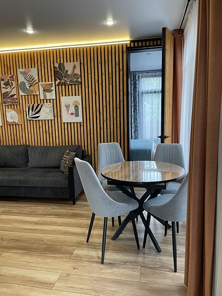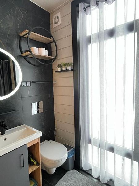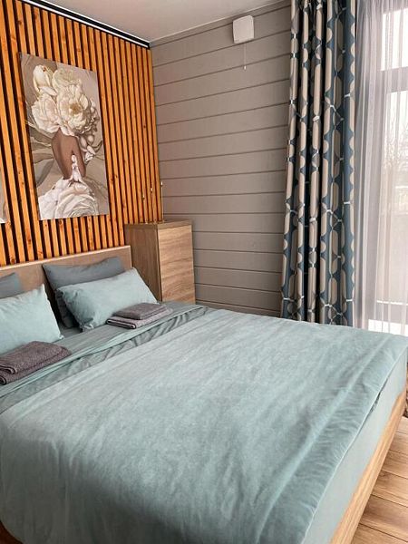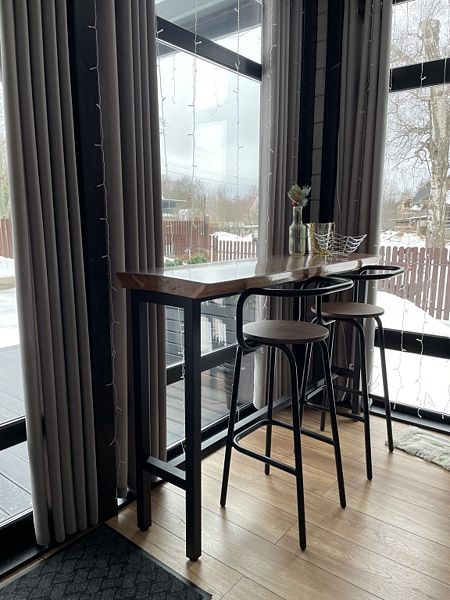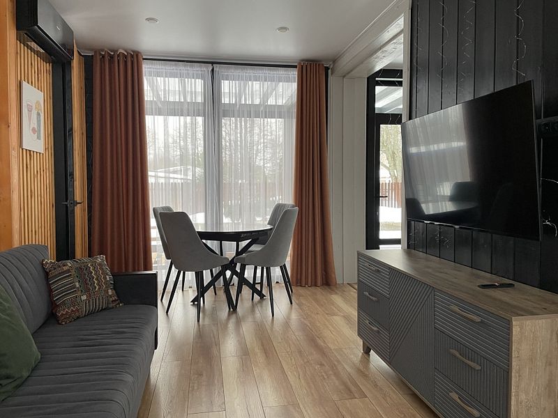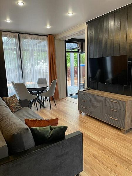 Дом с панорамным остеклением во всех комнатах, две спальни, открытая терраса и кухня-гостиная. Дом рассчитан на комфортное проживание 4 человек.