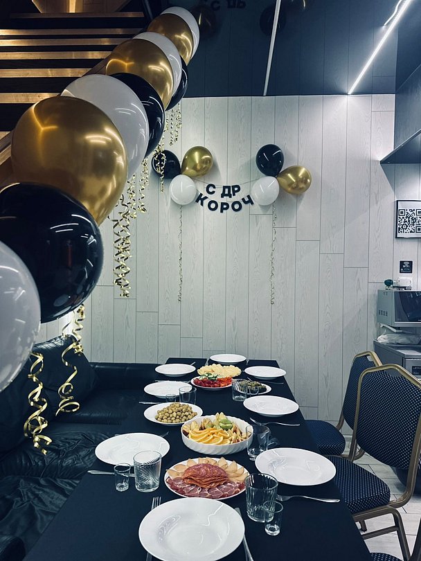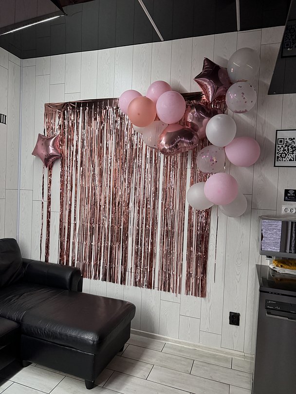 Дым-машина, украшение шарами и арками, фотозоны.