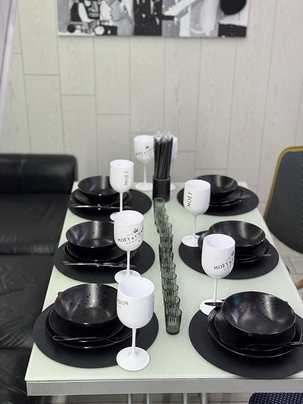 Премиальные комплекты постельного белья, полотенца, качественная кухонная утварь, включая посуду, столовые приборы и бокалы.