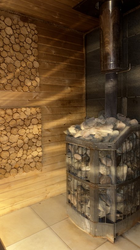 Баня на дровах доступна круглосуточно днём и ночью. Парение начинается примерно через полтора часа после растопки, достигая температуры около 110°C.