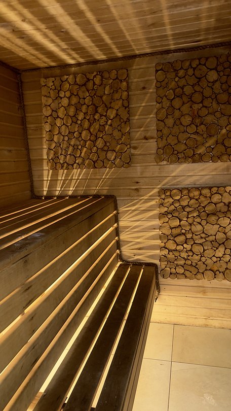 Русская баня с возможностью насладиться традиционным парением на дровах и последующим освежающим купанием в круглогодичном тёплом бассейне на открытом воздухе.