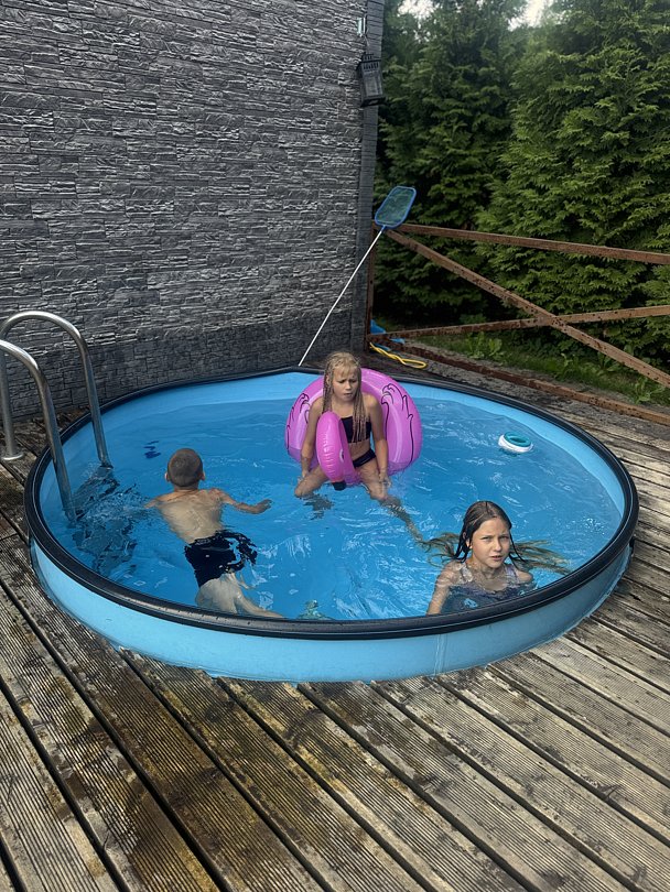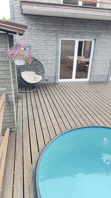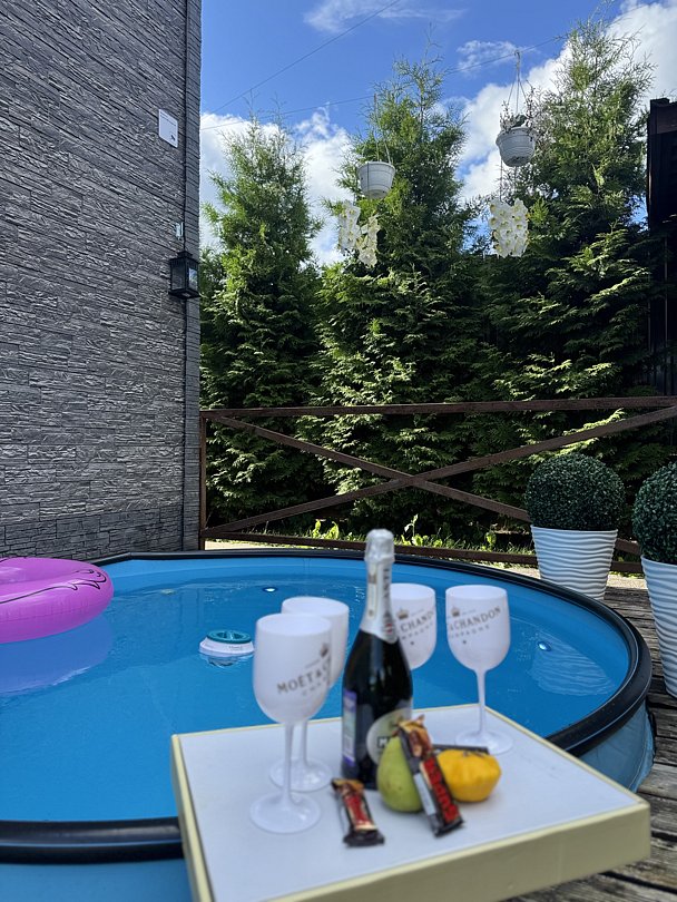 Круглогодичный тёплый бассейн глубиной 1,5 метра и температурой воды 25°C даже зимой.