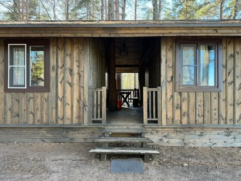Домик из двух частей, соединенных террасой. Одна половина состоит из кухни гостиной с раскладным двуспальным диваном, туалетом с душевой кабиной. Вторая половина это две отдельных спальни.