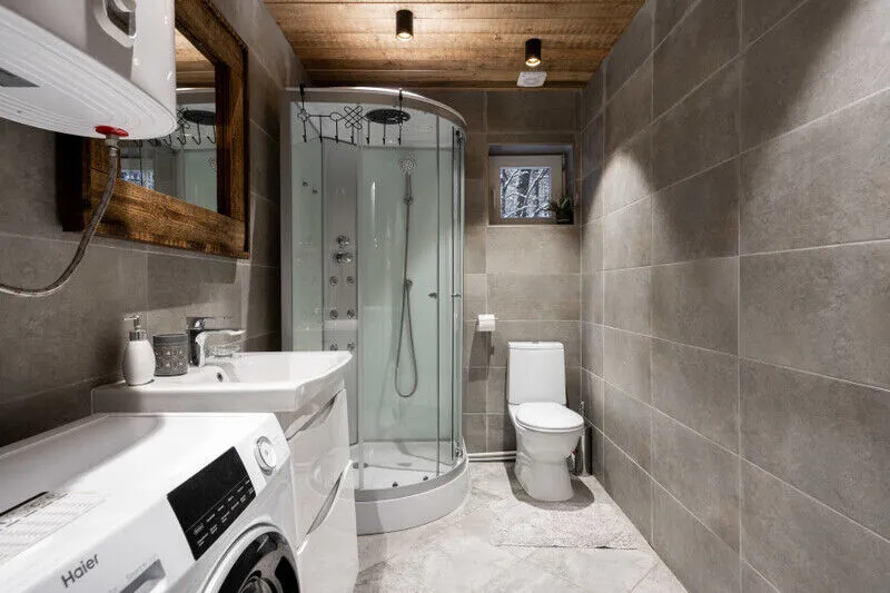 - Ванная комната: унитаз, душевая кабина, водонагреватель, стиральная машина.