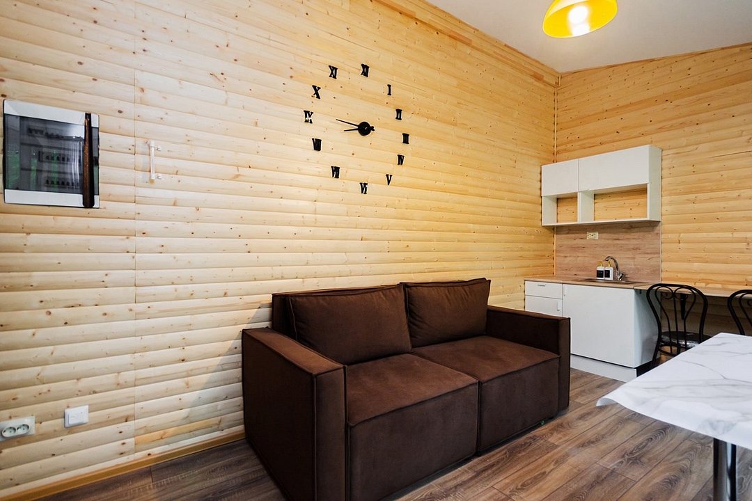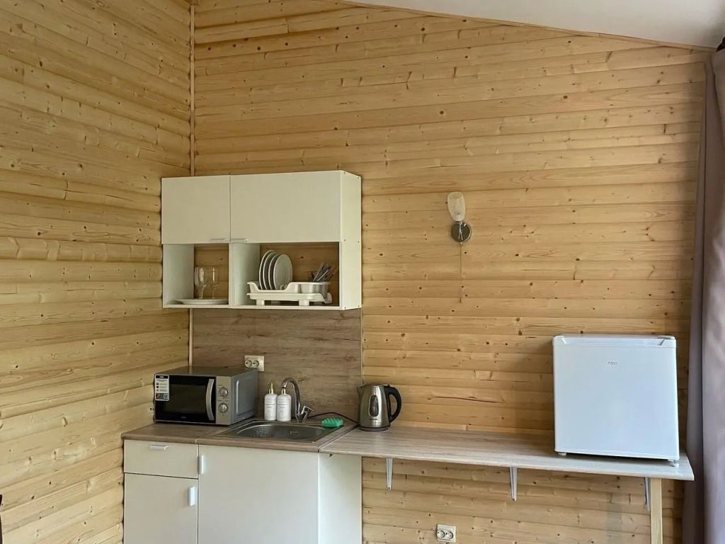 Добро пожаловать в дом "Мария" на Базе отдыха "Гармония", где вас ждёт комфорт и расслабляющая атмосфера. Этот дом идеально подходит для круглогодичного семейного отдыха или дружеских встреч. Внутри расположены две просторные комнаты, включающие спальню и кухню-гостинную. Обе комнаты оснащены комфортабельным двуспальным диваном-кроватью, что обеспечит гостям качественный сон и восстановление сил. Кухня-гостинная оборудована всем необходимым для приготовления пищи, а также отдыха с компанией друзей или в кругу семьи: большой стол, стулья, холодильник, микроволновая печь и посуда. Отдельная комната для сауны станет настоящим оазисом релаксации, где вы сможете расслабиться и восстановить силы после активного дня на свежем воздухе. Здесь создана идеальная атмосфера для уединения и отдыха. Специально оборудованный выход из дома позволит гостям погрузится в горячую купель "Фурако" прямо из сауны, что гарантирует полное уединение и комфорт. На территории Дома "Мария" расположена мангальная зона и парковка. В доме есть всё необходимое для комфортного отдыха: - Удобная мебель (обеденный стол, стулья, шкаф и тумбочки для личных вещей). - Кондиционер для поддержания комфортной температуры, охлаждения воздуха в помещении. - Дополнительный обогреватель. -️ Проектор с подпиской на иви для просмотра любимых фильмов и сериалов. - Wi-fi для того чтобы всегда быть на связи. - Кухонная техника (холодильник, микроволновая печь, чайник, вся необходимая посуда). - Постельное белье и полотенца (3 полотенца на каждого гостя), одноразовые тапочки, зубной набор, косметический набор, гели для душа, шампуни, фен. - Для нескучных вечеров в доме есть настольные игры. - На каждом участке бесплатно предоставляется мангальная зона (решетки - предоставляется бесплатно; угли и розжиг - по запросу). - В общей зоне расположены подвесные кресла-гамаки для взрослых и детей. ️- Для Вашего удобства и спокойствия парковка для личного транспорта расположена на территории. Купель Фурако и Сауна являются дополнительными услугами. Плата за них идет отдельно от проживания. Удобная локация. - съезд на КАД - 2 км; - Центр города - 40 км; - Красный пруд - 5 м; - Парк «Ораниенбаум» (Дворцово-парковый ансамбль): 500 м; - Магазины «СуперЛента», «Пятерочка», «Росал24» - 500 м. -ТЦ в котором расположен кинотеатр «Кинопарк», фут-корт, табачный магазин «Табакон», детская зона, аптека «Невис», «Улыбка радуги», банкоматы «Втб»/«Сбербанк»/«Т-банк»/«Альфа-банк» - 500 м; - Ресторан “Diаmоnd” - 500 м; - Ресторан “Тоkyо сity” - 1 км; - Ресторан “Евразия” - 2 км; - Оборудованные детские площадки - 1 км; - Оборудованные спортивные площадки - 1 км; - Вокзал «Ломоносов» - 2 км.Услуги и удобства