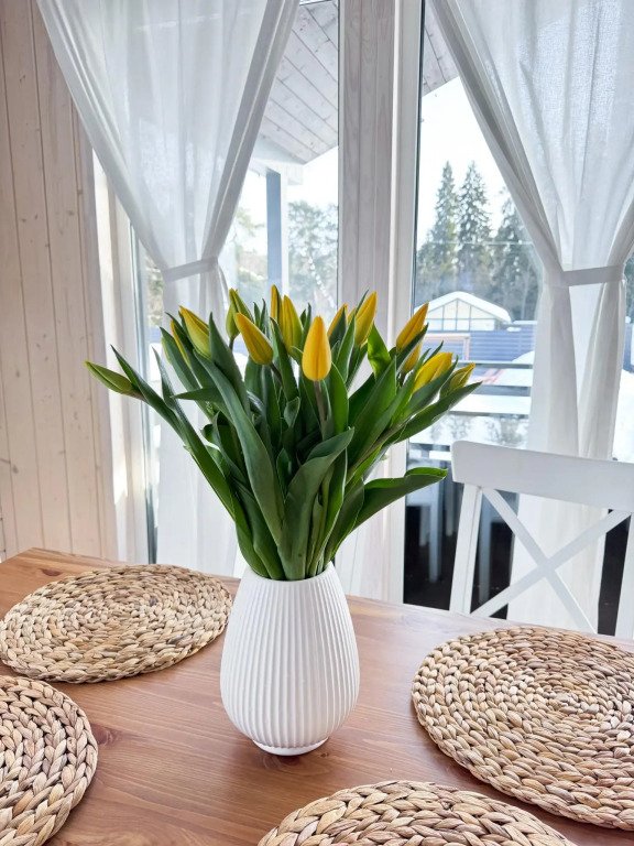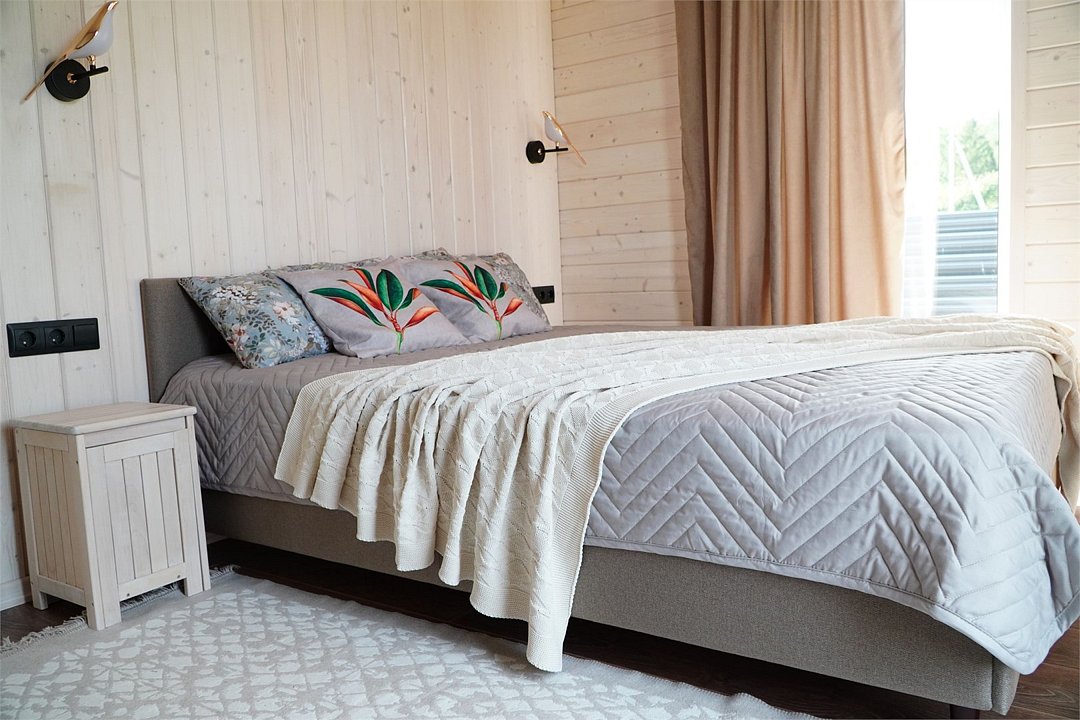 Интерьер домов вдохновлен философией Нyggе: теплые цвета, мягкие ткани и уютная мебель, включая большие двуспальные кровати. Вместительная терраса перед домом гарантированно станет главным центром притяжения для всей семьи теплыми летними вечерами.