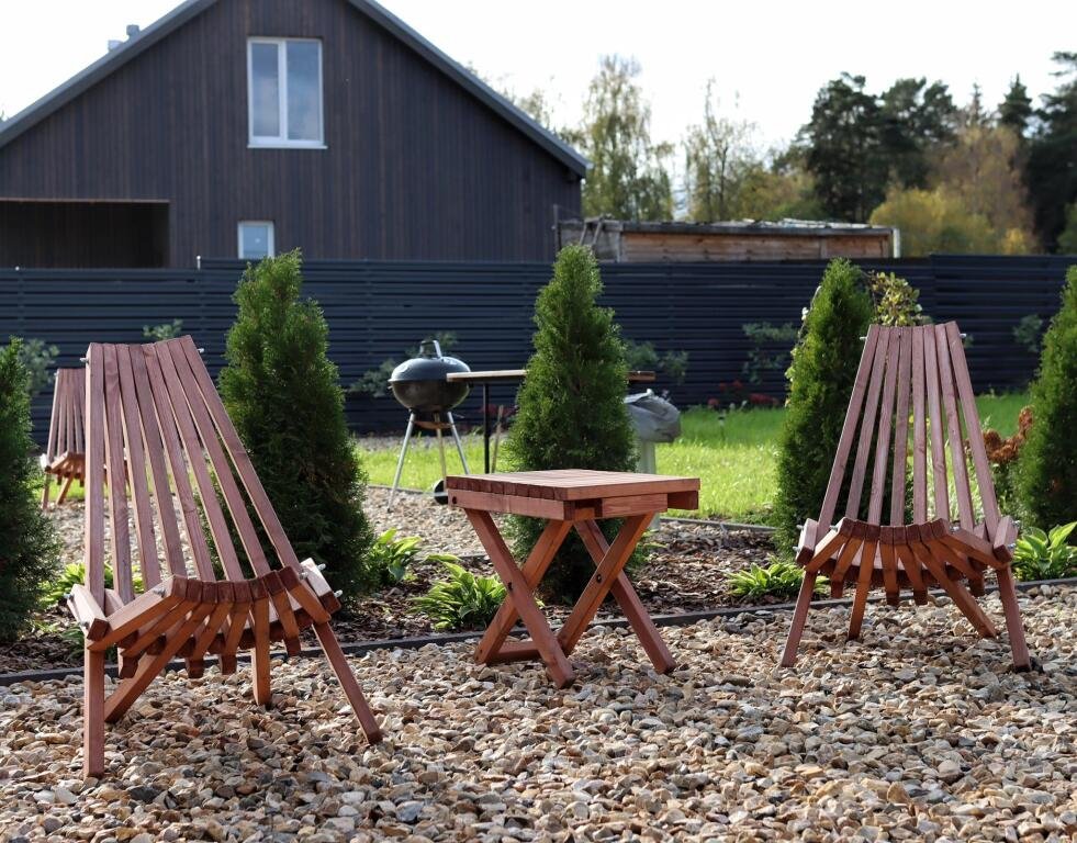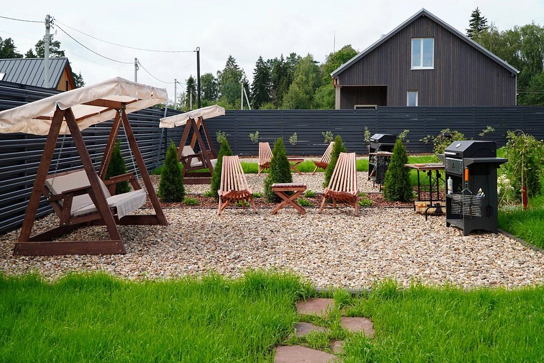 На территории каждого дома есть зона для отдыха с мангалами, удобными креслами и качелями для маленьких гостей. Вы сможете приготовить мясо, рыбу, морепродукты и овощи на гриле на открытом огне. Ваши друзья и близкие будут в восторге от такой загородной кухни.