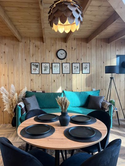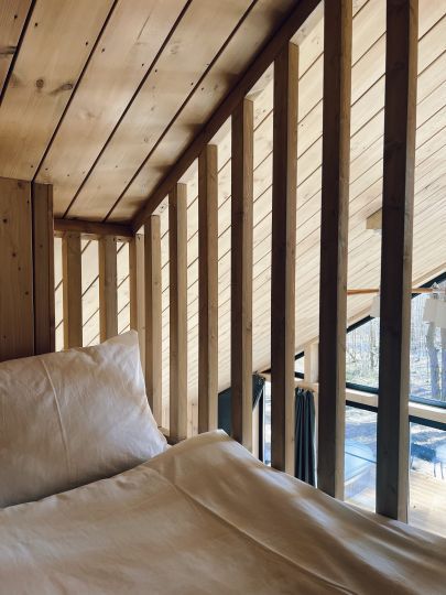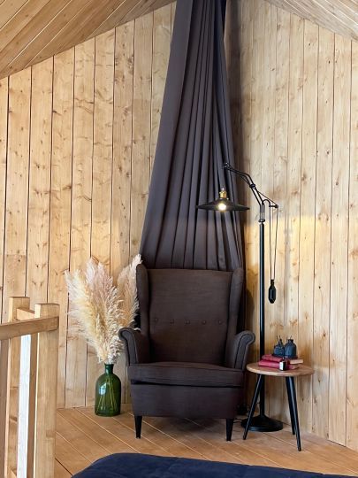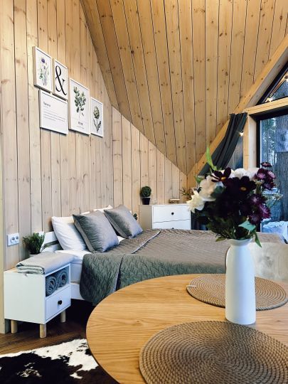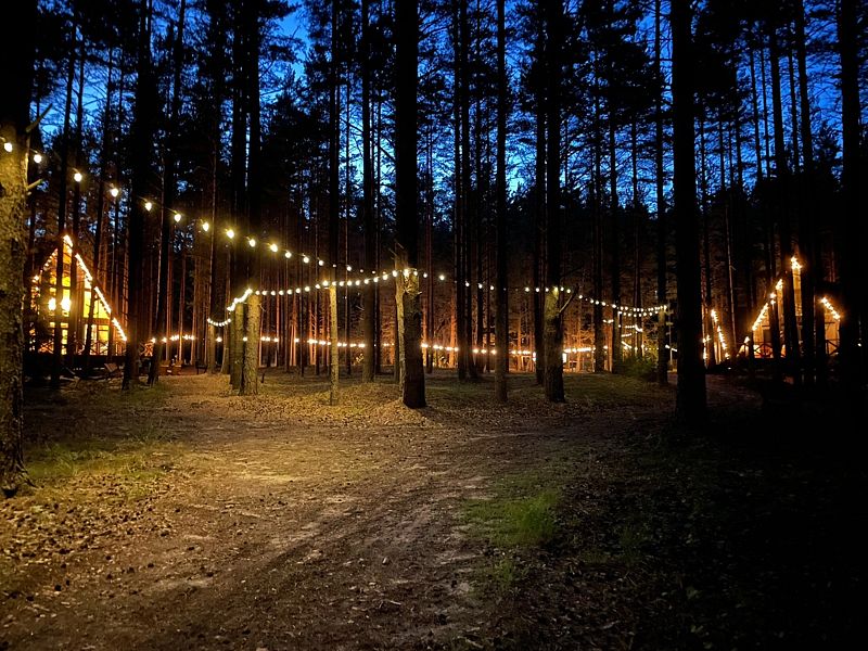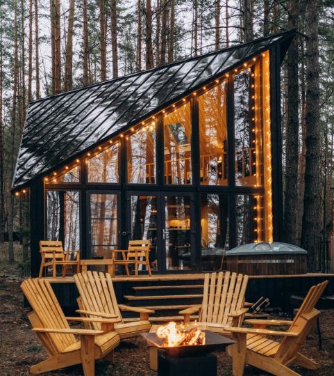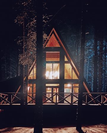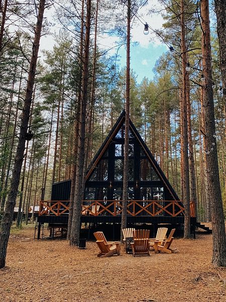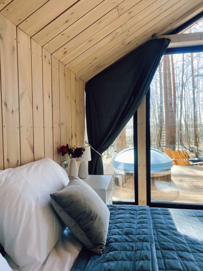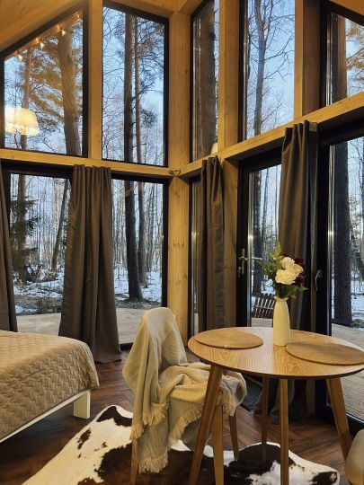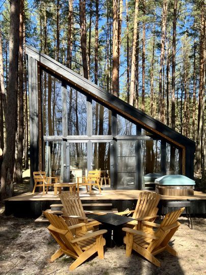 Уникальные пятиугольные хижины в лесу, просторные террасы, горячая купель на террасе дома — вот то, что сделает Ваш отдых незабываемым. Вас не покинет ощущение того, что Вы приехали в свой уютный лесной дом, где всё готово для спокойного отдыха вдали от суеты. Помогут в этом свечи и уютные пледы, солнечные лучи сквозь стеклянный фасад, мягкий ковёр у кровати, вдохновляющие книги и абсолютная тишина.