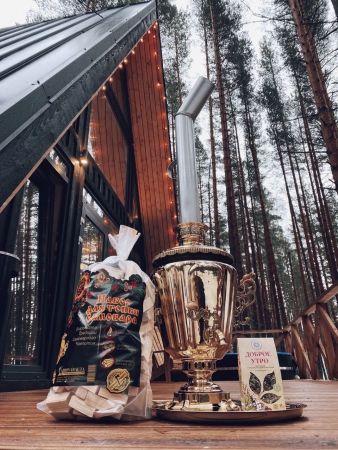 Настоящий тульский самовар с комплектом для растопки и лесным чаем.