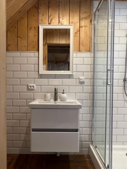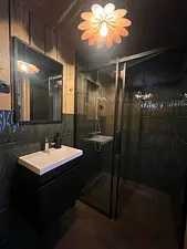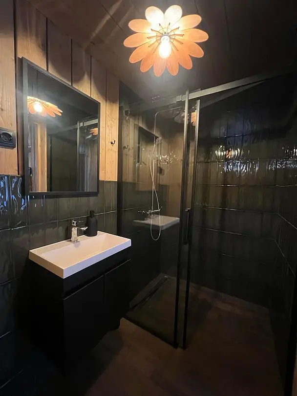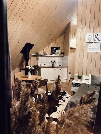 Небольшой, очень уютный одноэтажный дом включает в себя оборудованную кухню, полноценный санузел, множество декора и спальное место 160х200. На террасе дома расположилась горячая купель, рядом с домом мангал и чаша для отдыха у костра.