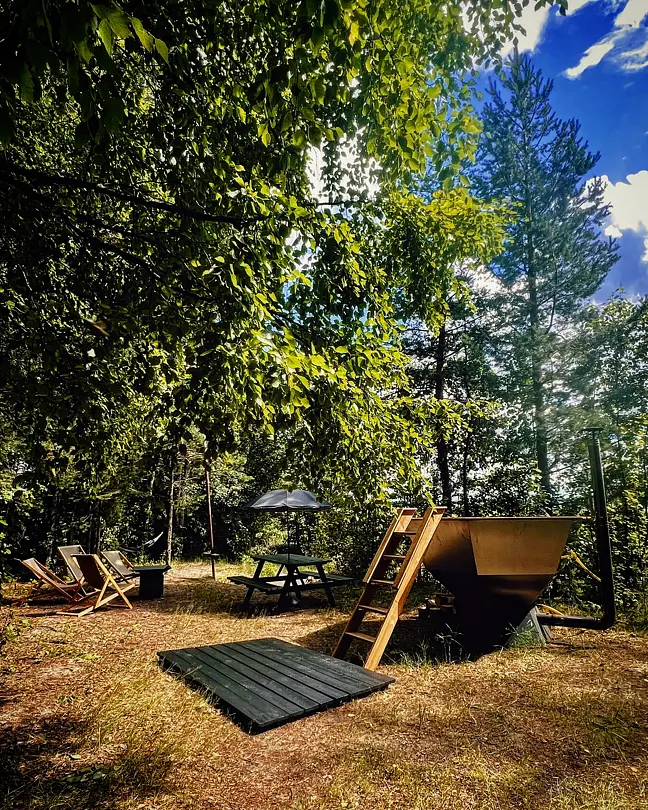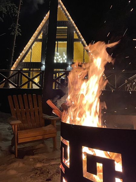 Купель на террасе, зона для отдыха у костра и уникальная волшебная атмосфера.