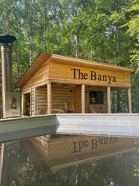 Инфраструктура: купельРасположение: выход к рекеСовременная баня на самом берегу реки (The River Banya) с собственной террасой и кедровой купелью. Сидеть в тёплой воде, прогретой дровяной печкой и созерцать мерные воды реки — размеренный отдых, необходимый каждому.