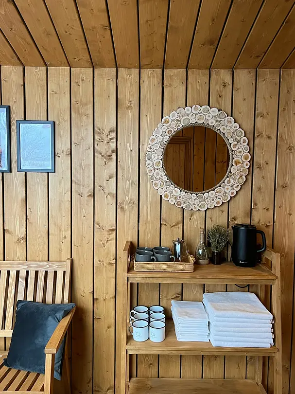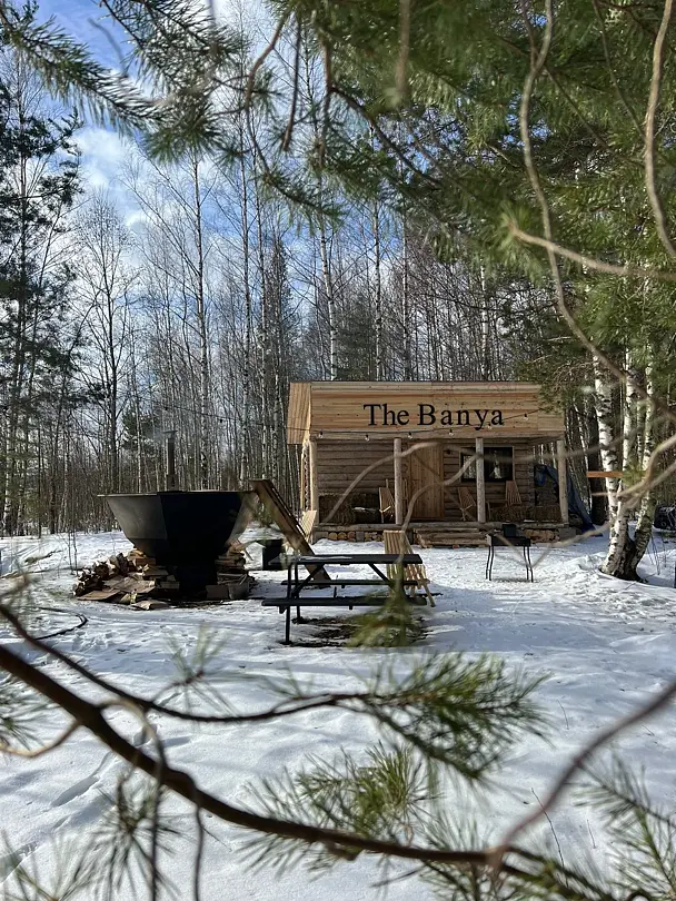Также в Вашем распоряжении будет собственный пляж, весельная лодочка, зона отдыха с чашей для костра и мангалом.Лесная баня (The Banya)
