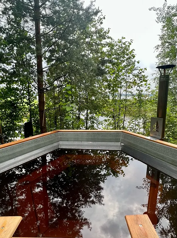 Горячий или холодный дровяной чан на самом берегу Вуоксы.
