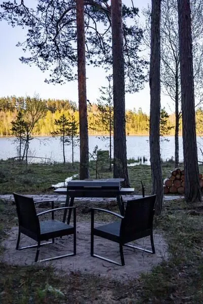 А вечером, на открытой террасе, вас будет ждать мангальная зона, где можно приготовить ароматный ужин на углях и насладиться тишиной и звуками природы, глядя на закат, отражающийся в спокойной глади озера.