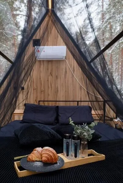 Представьте себе уединенный уголок в самом сердце леса, на берегу чистого озера. Здесь, укрытый среди вековых сосен и берез, расположился новый комфортабельный шалаш для глэмпинга.