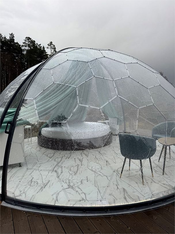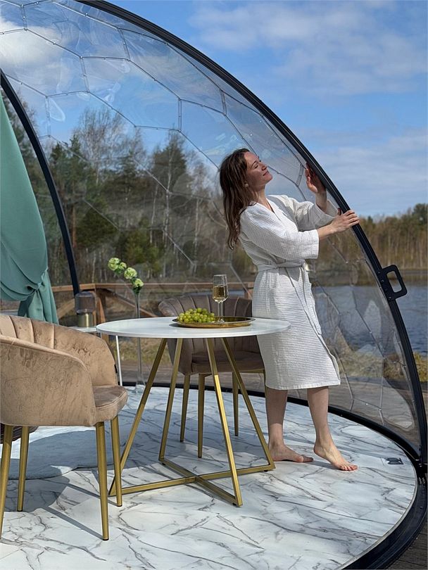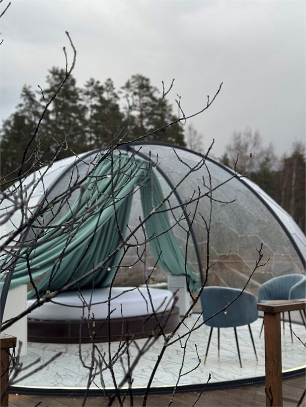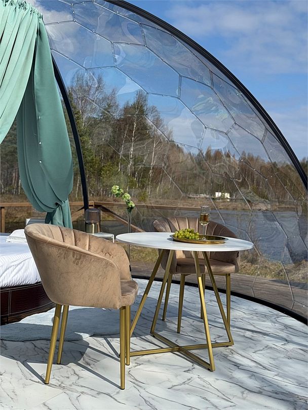 Просторный купол, вместимостью до 25 человек, подходит для проведения любого мероприятия: празднования дня рождения, проведения камерной свадьбы, деловой встречи и других важных событий!