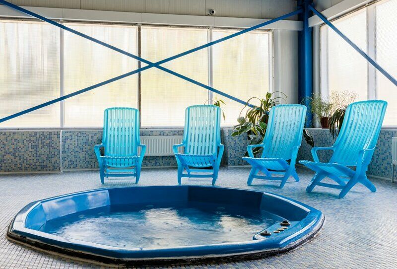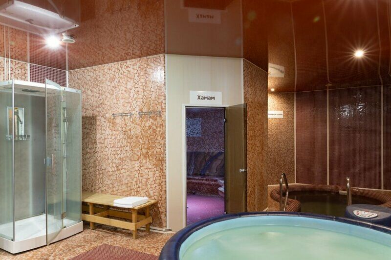 Тип бассейна: крытый бассейнРядом с бассейном: шезлонгиТемпература в бассейне: 28 °CРазмеры: 6 x 20 мПлощадь: 120 м²Глубина (диапазон): от 150 до 200 смСтоимость для проживающих гостей: