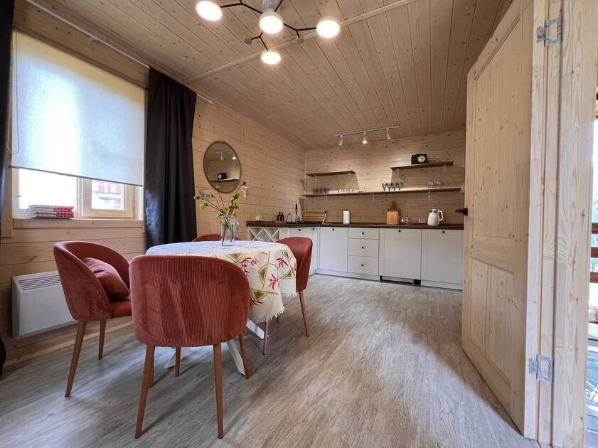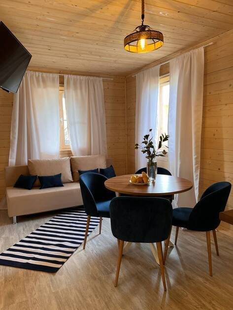 Размещение: 2 человека (+2 детей на дополнительном месте (раскладной диван). Интерьер и декор выполнены в коричневых, терракотовых и других «грибных» оттенках, крыльцо-веранда, за окном лес, шелест листьев, пение птиц.
