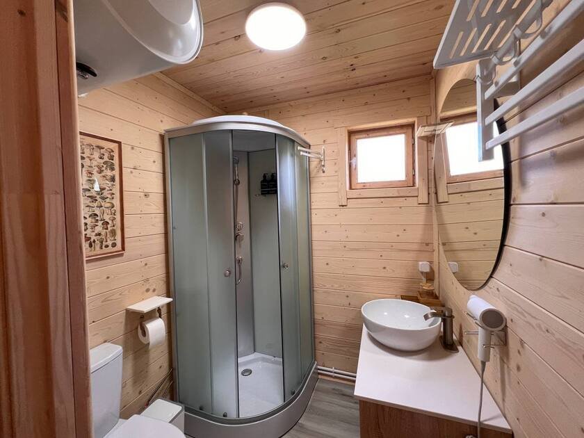 Здесь есть все необходимое для полноценного отдыха. На территории имеется мангал, костровая зона, детская площадка, батут, баня на колёсах.