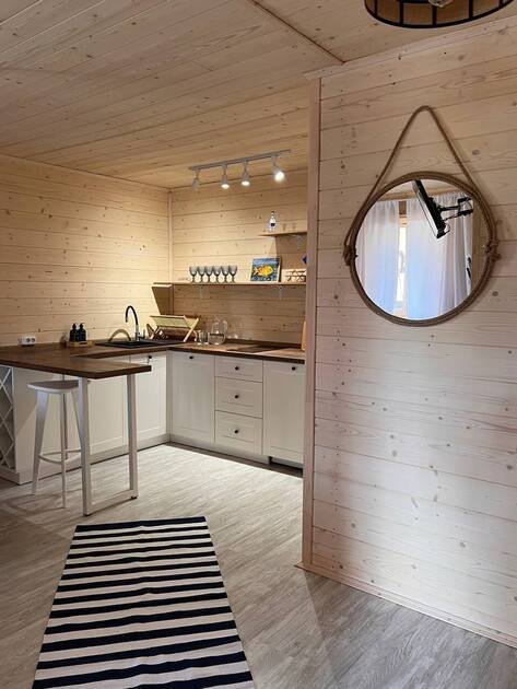 Дома с верандой полностью укомплектованы для комфортного проживания и включают удобные спальные места и постельное белье, кухню, оснащенную бытовой техникой и набором посуды, телевизор, Wi-Fi, современный санузел с душем и гигиеническими принадлежностями.
