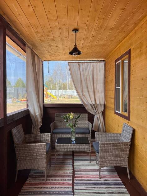 - крыльцо-веранда с мягкими окнами и зоной отдыха.
