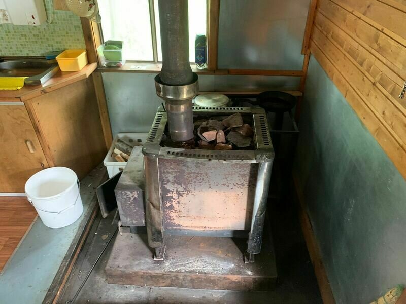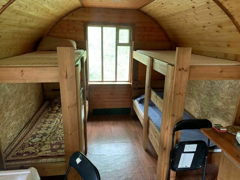 Небольшой рыбацкий домик, отапливается печкой. В домике: 2 двухъярусные кровати, стол, стулья, мини-кухня, плита, чайник, набор посуды. Удобства на улице